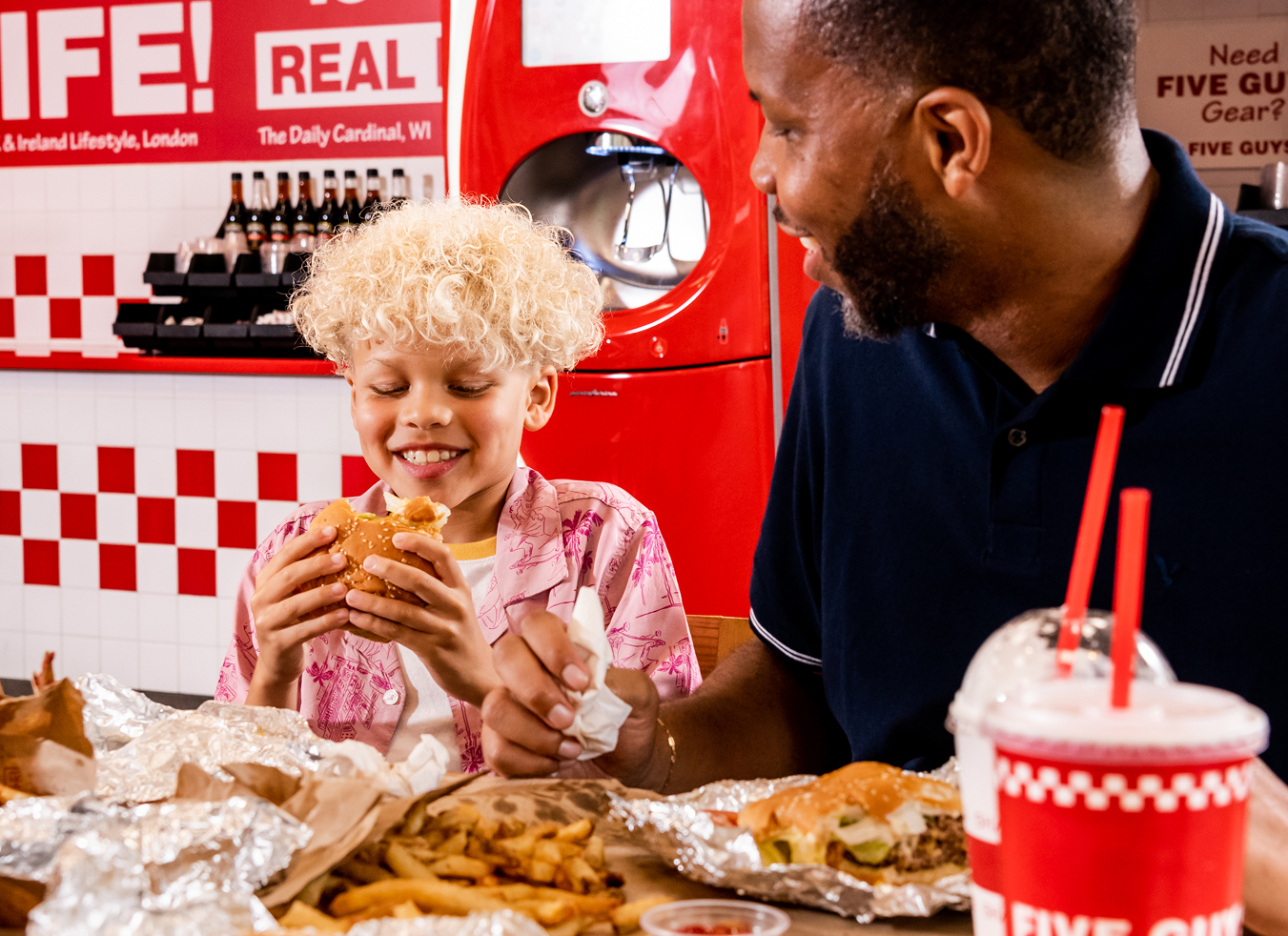 The experience of stepping into a Five Guys is unmistakable. Good music, amazing smells, plenty of peanuts. Whether you’re at your hometown store or halfway across the world, this is the place to pull up to a table, unwrap a hot burger, and sink your teeth into something special.